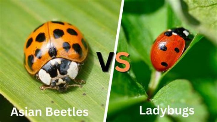 All ladybugs are bright red with black spots while the color of Asian lady beetles varies from red to orange. Ladybugs have a round or oval shape. Asian lady beetles are usually a little longer and the head or snout is more pointed. The easiest way to tell them apart is the head.