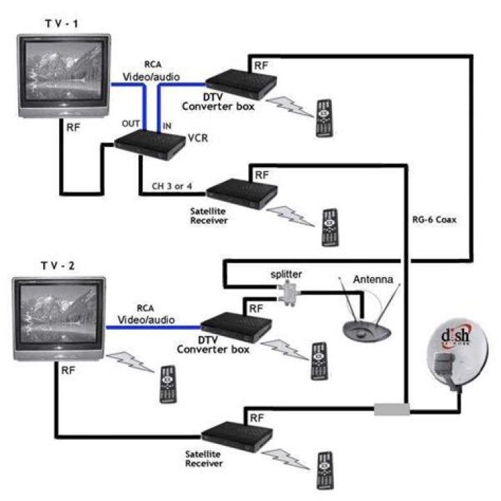 - Link each TV set to the splitter or switch using however many coaxial cables and ports on the splitter/switch you need.