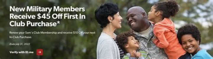 Qualified military who join or renew their Sam's Club membership in-club will receive $10 OFF your first purchase of $10 or more in the first 60 days. This offer is valid for active and retired military, veterans, and their spouses.