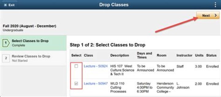 - Select the course from your schedule that can be dropped.