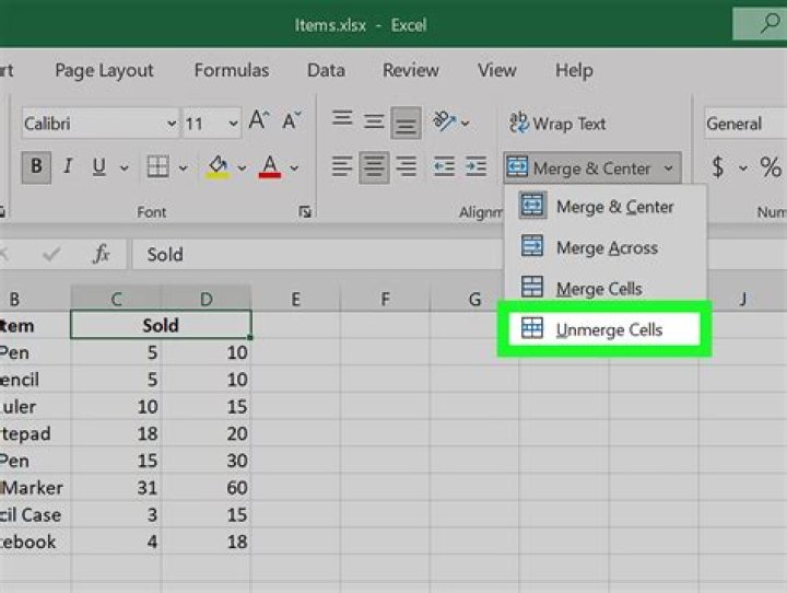 Click Merge & Center. 3. Select Unmerge cells.