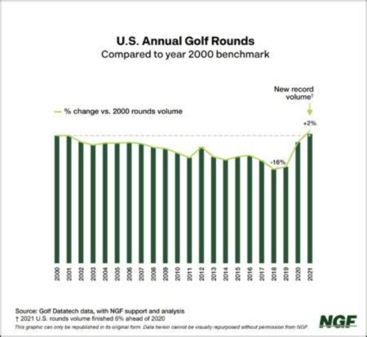 In 2019, according to the National Golf Foundation, golfers played an average of 18.2 rounds. This number varies greatly by age however. Golfers over the age of 65 played an average of 36 rounds a year while those ages 18-34 only play an average of 12 rounds.