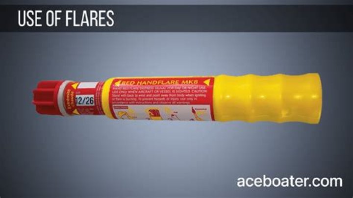 Red Hand-held Flare (day and night) Parachute Flare (day and night) Red Meteor (day and night) Orange Smoke Signal (hand-held/day only) Floating Orange Smoke Signal (day only)