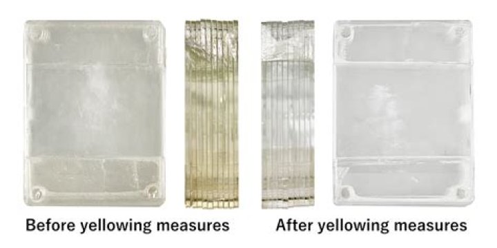 This yellowing happens thanks to a flame retardant called bromine in those old ABS plastics. When exposed to UV light, those bromine molecules can destabilize and leech through to the surface, causing the plastic to turn yellow (or even brown if left long enough).