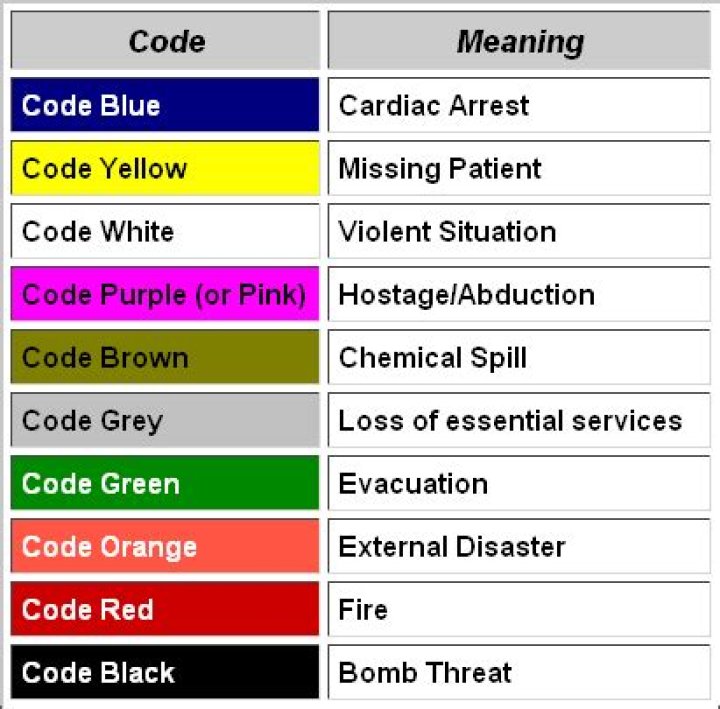 What do the codes mean in a hospital?