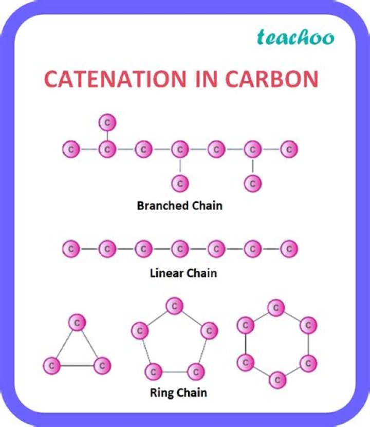As a result, a large number of organic compounds are due to the property of catenation of carbon elements. Three types of chains can be formed when carbon atoms combine. As shown below, there are three types of chains: straight chains branched chains, and closed chains or ring type chains.