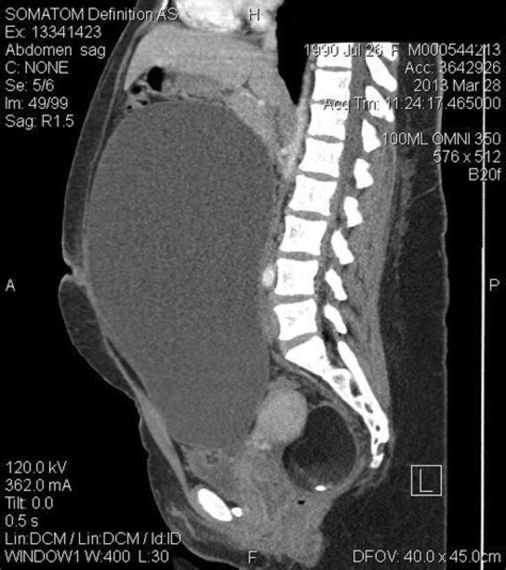 What size is a giant ovarian cyst?