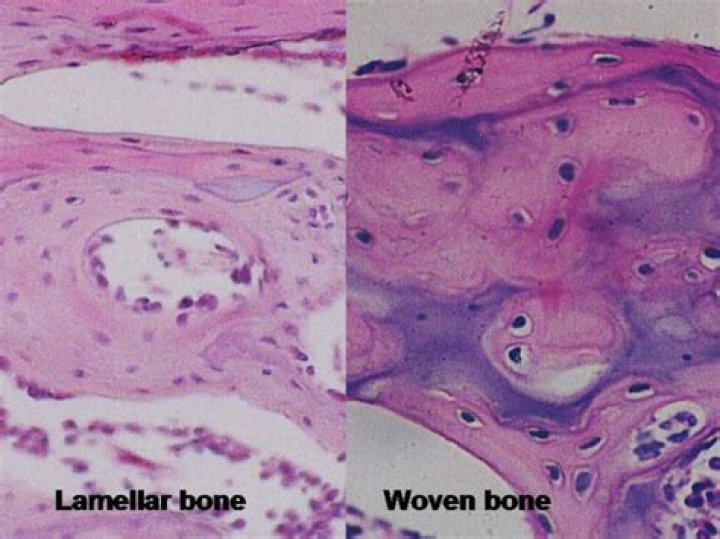 How can you tell the difference between a woven bone and a lamellar bone?