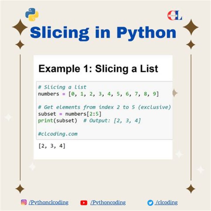 List slicing refers to accessing a specific portion or a subset of the list for some operation while the orginal list remains unaffected. The slicing operator in python can take 3 parameters out of which 2 are optional depending on the requirement.