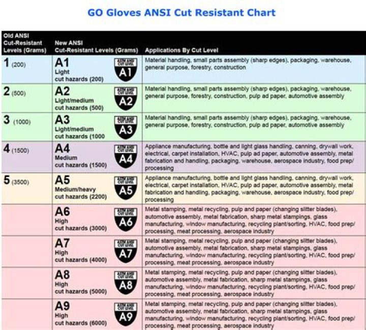 Cut level 5: Extreme cut hazards. These gloves are used for jobs that involve very sharp blades, such as a meat butcher, and for heavy metal stamping and plate glass work.