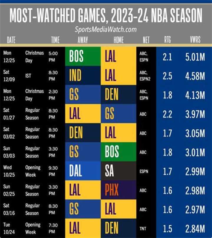 Game 6 of the 1998 Bulls-Jazz series ranks as the highest rated (22.3) and most-watched (35.89M) NBA game on record.
