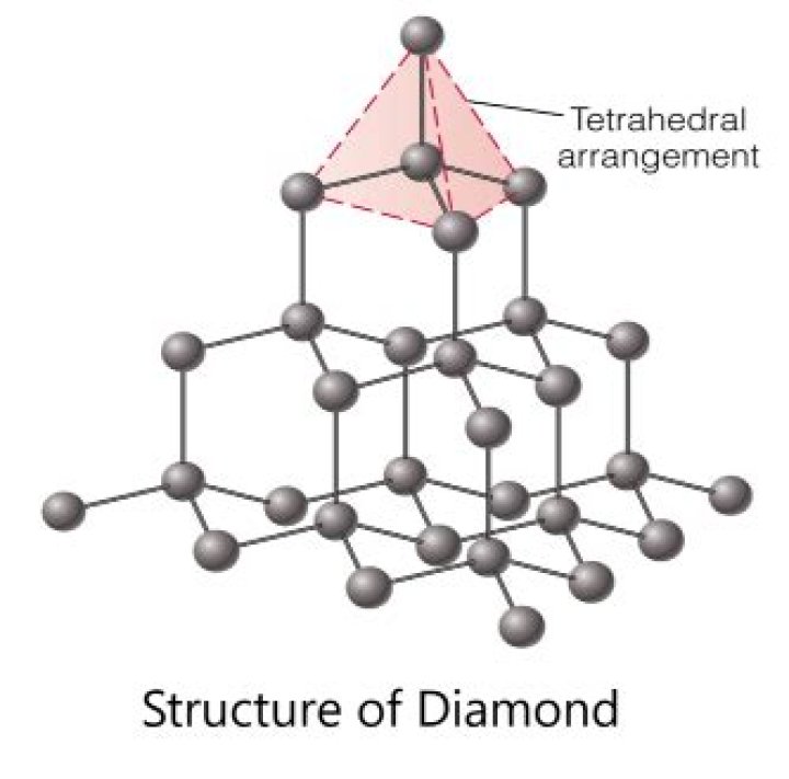 Diamond is a giant covalent structure in which: each carbon atom is joined to four other carbon atoms by strong covalent bonds. the carbon atoms form a regular tetrahedral network structure. there are no free electrons.