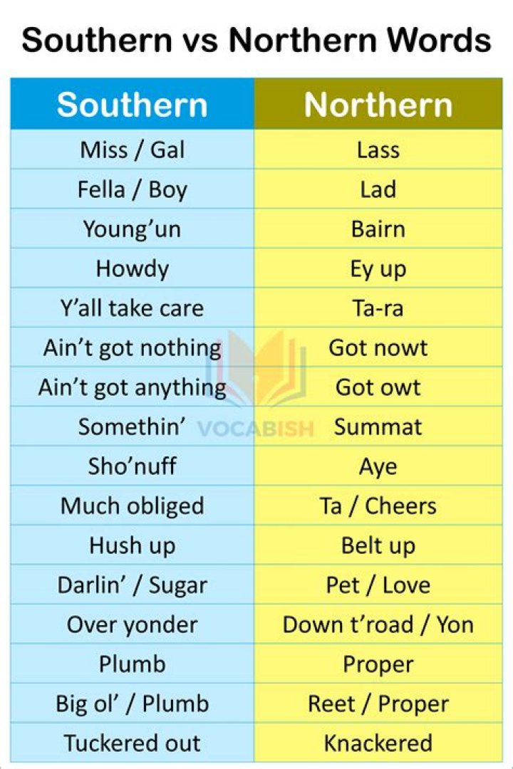 What words do Southerners say differently UK?