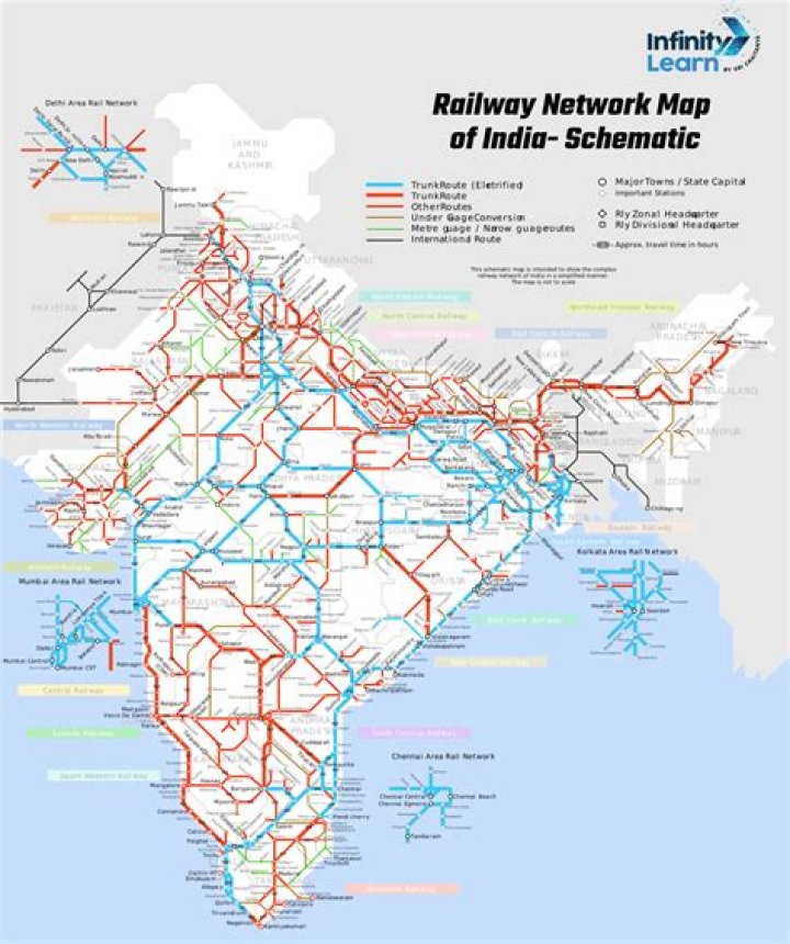 The Pakistan Railways network is divided into main lines and branch lines. The Karachi-Peshawar line is the main north-south line, and the Rohri-Chaman line is the main east-west line.