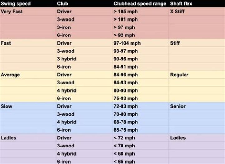 Stiff – This range is still considered fast, but you most likely won't be out on Tour anytime soon. If you're between 97 and 104 mph with the driver, you need a stiff flex. Regular – Now we are getting into the range where a majority of recreational golfers fall, and also where many LPGA pros fall.