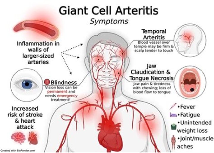 Up to 1 in 5 people with polymyalgia rheumatica develop a more serious condition called temporal arteritis (also known as giant cell arteritis), where the arteries in the head and neck become inflamed.