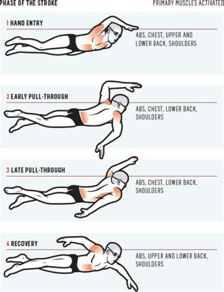 More than anything, however, swimming consistently exercises the core muscles and enables your abs to aid in overall stability and body control. Simply put, core muscles like abs, hips, and lower back are completely engaged when you're swimming.