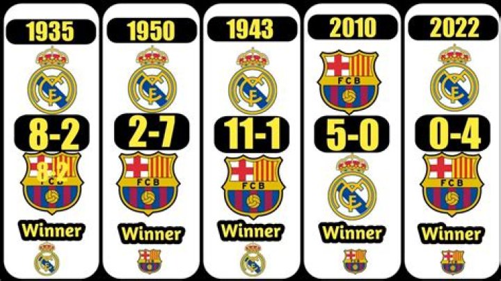 Real Madrid leads in head-to-head results in competitive matches with 100 wins to Barcelona's 97 with 52 draws; Barcelona leads in exhibition matches with 19 victories to Madrid's 4 with 10 draws and in total matches with 116 wins to Madrid's 104 with 62 draws as of the match played on 20 March 2022.