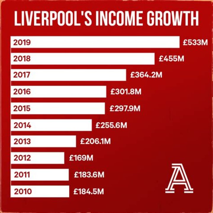 The extension to the 2019-20 campaign also meant that Liverpool's media revenue rose to £266.1 million, a £64.5 million increase. Despite their Premier League title win, Liverpool's overall revenue remained roughly similar to the previous year, dropping by £3 million to £487 million.