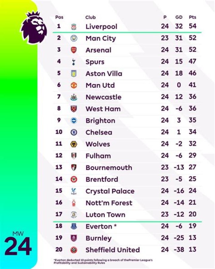 What does P stand for in the Premier League table?