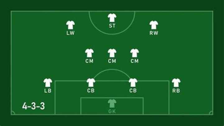 The 4-3-3 is set out in three lines on the pitch - a typical defence of two centre-backs and two full-backs, three central midfielders who may form a triangle and three strikers, one central and two who play on the flanks.