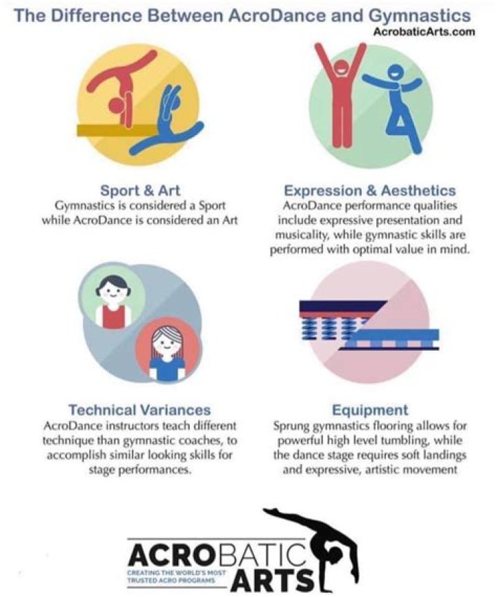 Despite being technically difficult to execute, acrobatic tricks are meant to blend in seamlessly with dance steps, providing an extra level of excitement and flair to dance choreography. In short, Gymnastics is a sport, Acro Dance is an art form.