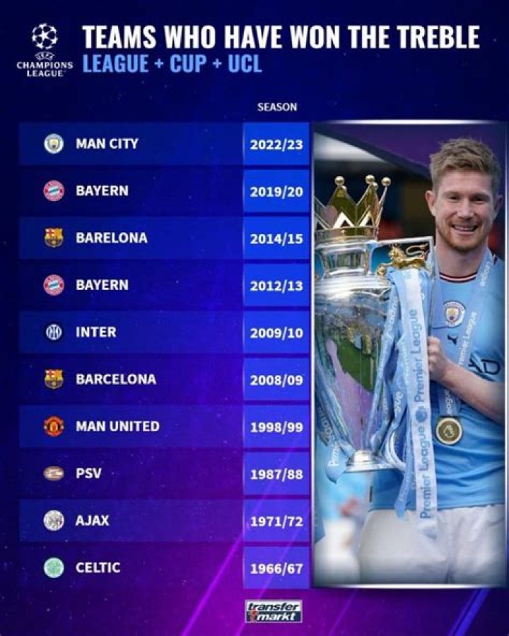 Which teams have won the treble?