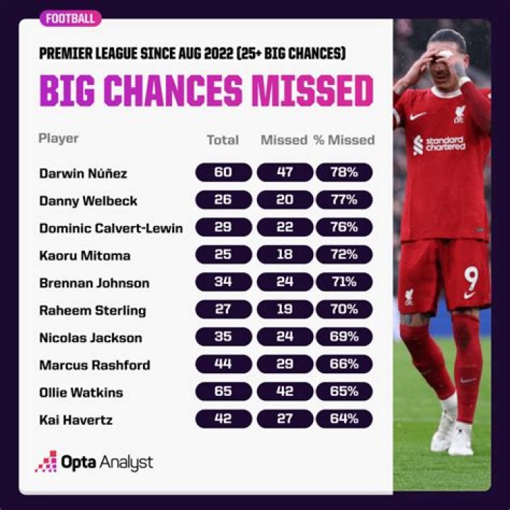 Who created most big chances in football?
