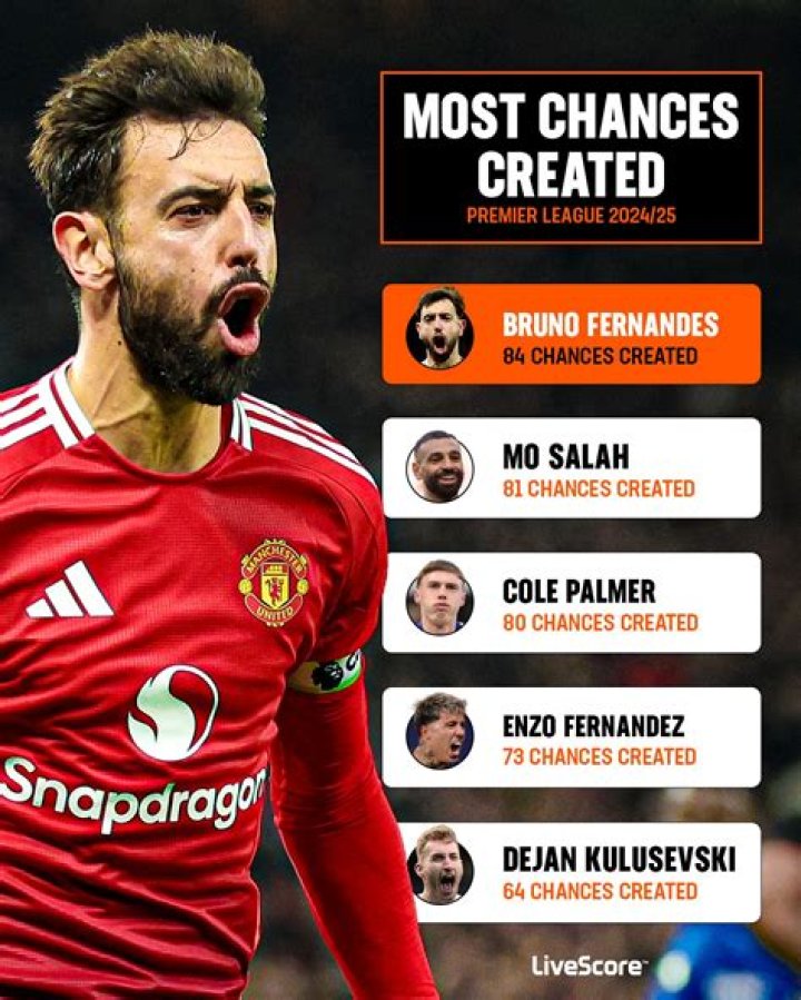 Most chances created in the Premier League this season: ◉ Bruno Fernandes (71) ◎ Trent Alexander-Arnold (64) ◎ Kevin De Bruyne (44) ◎ Mohamed Salah (43) ◎ James Ward-Prowse (42) ◎ Raphinha (42) We Don't Talk About Bruno.