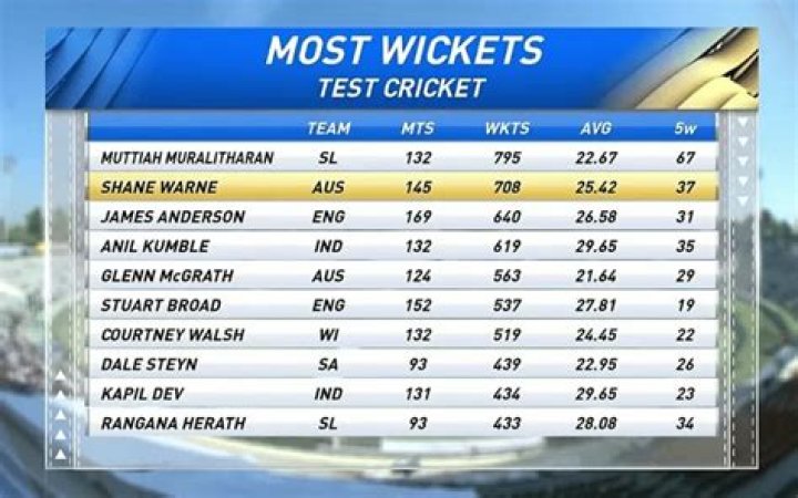 The leading wicket-taker of all time in men's international tests is Sri Lanka's Muttiah Muralitharan. The spin bowler took 800 wickets in a test career spanning from 1992 to 2010.