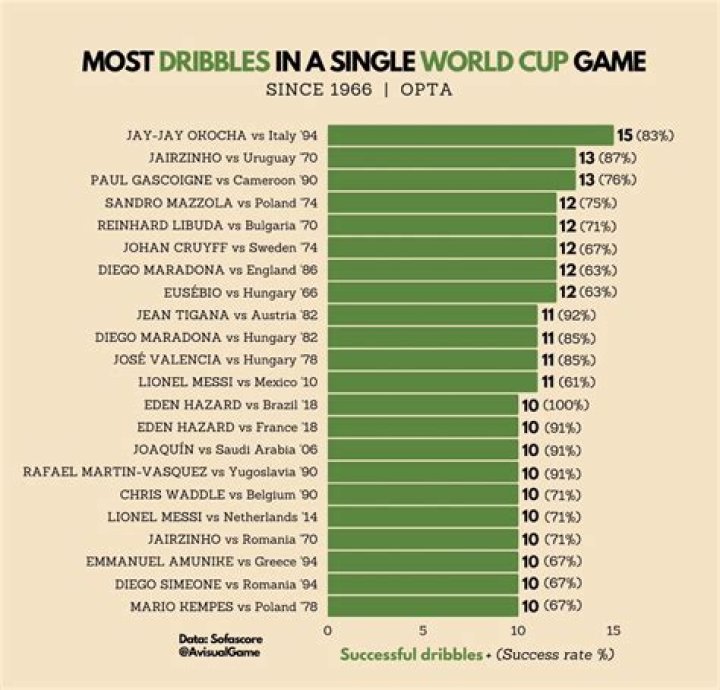 Who has the most dribbles in a single match?