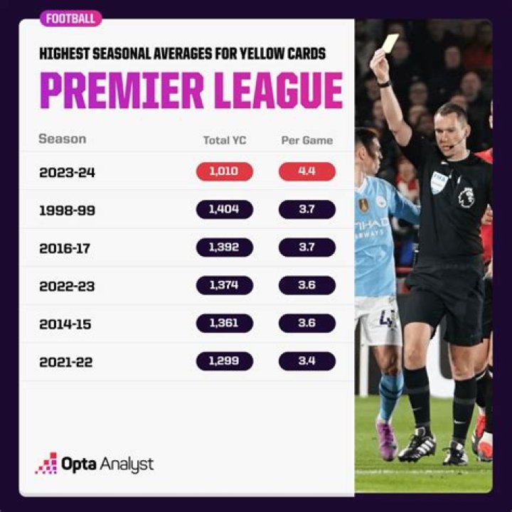 How many yellow cards are there in Premier League?
