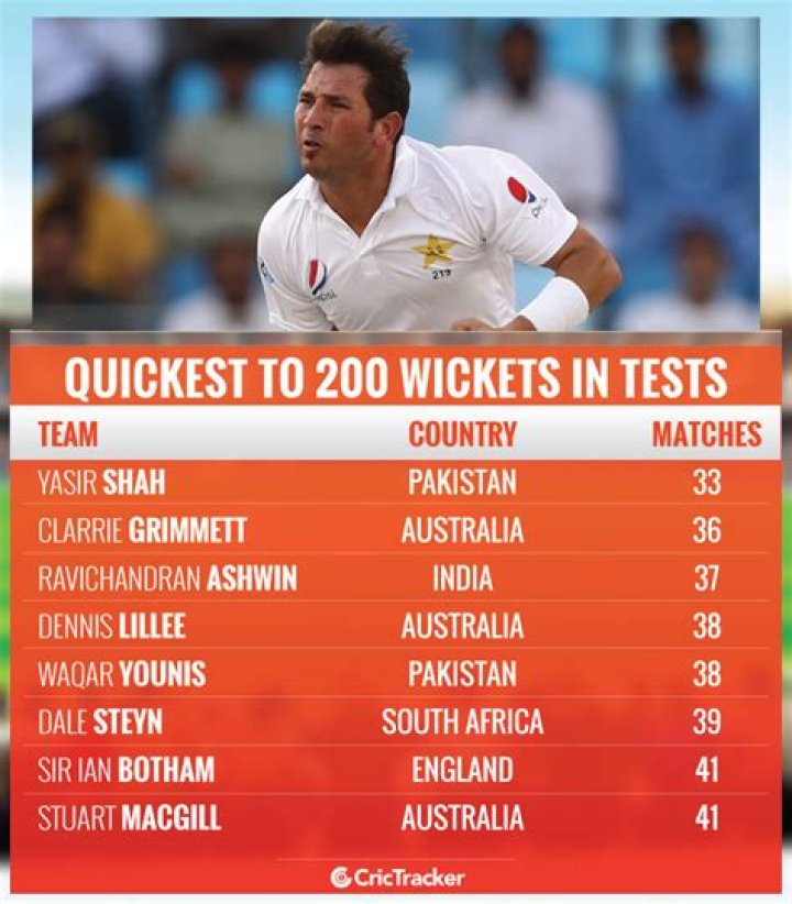 R Ashwin holds the Indian record for the fastest to 200 Test wickets as he got there in his 37th Test while Pakistan leg-spinner Yasir Shah holds the overall record, getting to the milestone in his 33rd Test.