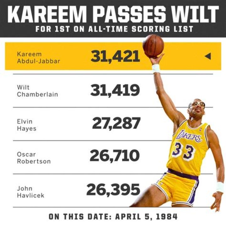 Kareem Abdul-Jabbar, known for his trademark sky hook, is the NBA's all-time leading scorer. When Kareem Abdul-Jabbar left the game in 1989 at age 42, no NBA player had ever scored more points, blocked more shots, won more Most Valuable Player Awards, played in more All-Star Games or logged more seasons.